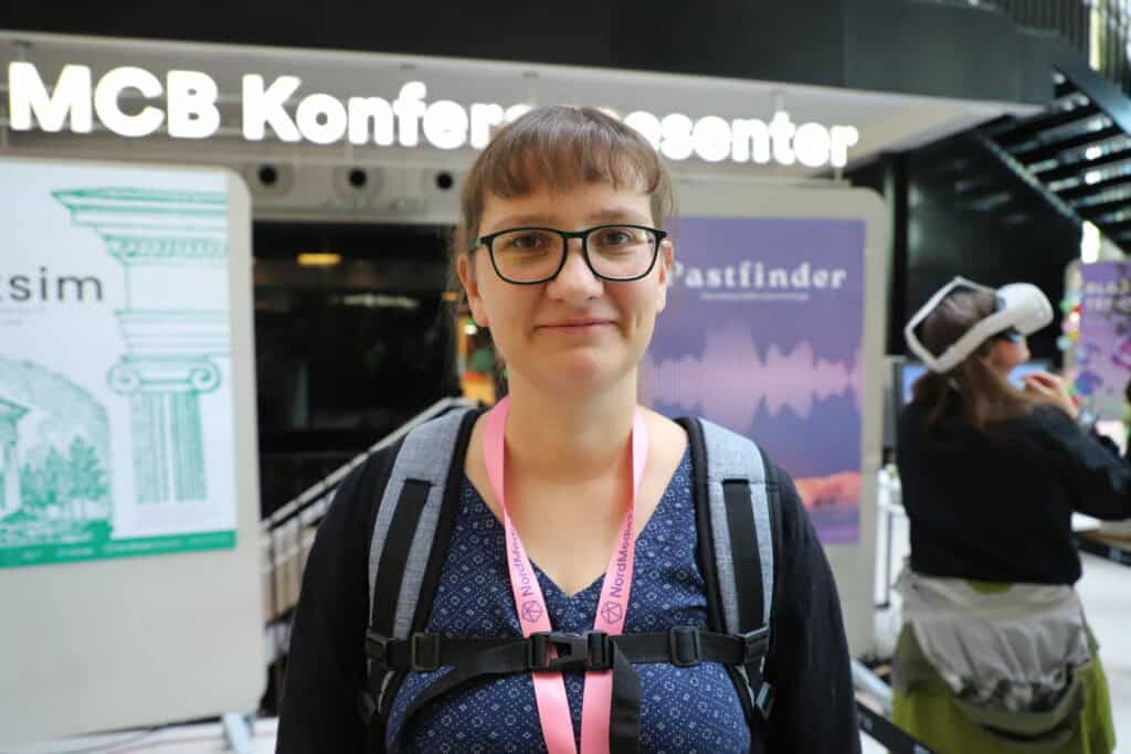 Down in the foyer we stumbled upon associate professor Turo Uskali from the Department of Linguistics and Communication Studies at the University of Jyväskylä in Finland. He was simply astonished by the quality and variation of the projects presented. Especially the so-called "Pastfinder" caught his interest as it shows the possible reuse of radio archive footage for education. The project, created by PhD student Rebecca Nedregotten Strand, uses radio archive footage of the heritage sites in the area on the Dovre Mountain Plateau to create location-based storytelling as an augmented full-body experience while hiking there.