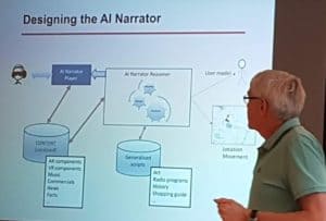 The group discussed, for instance, the inconvenience of coming home from a trip, only to discover that the area in question had shops, museums or restaurants that you would have liked to visit. Perhaps the AI Narrator could make it easier to discover these things while still on the trip.