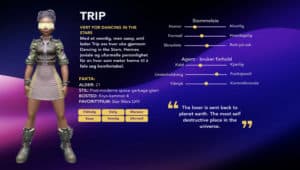 Trip er den første personen du møter når du kommer inn i Dancing in the Stars, en jente med en personlighet basert på ingen ringere enn Stian Blipp. Småfrekk, uformell men samtidig profesjonell fremstår Trip som en energisk programleder som er klar for å guide brukeren gjennom opplevelsen, og er åpen for spørsmål langs veien. For å skape dybde i personligheten har Trip en forhistorie, meninger og husker brukerens tidligere handlinger.