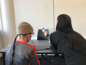 Det neste vi gjorde var eit etnografisk feltstudie, der vi rekrutterte bornefamiliar og fekk reise heim til dei for å undersøke korleis born brukar strøymetenester. Borna fekk sjølv velje sin favorittstrøymeteneste, og så fekk dei nokre oppgåver som vi hadde laga som dei skulle utføre i strøymetenestene. Borna brukte blikksporingsbriller under oppgåveløysinga, og dette gav oss konkrete data om kor borna såg når dei navigerte seg rundt i strøymetenestene, og kanskje viktigare; kor dei ikkje såg i det heile tatt.