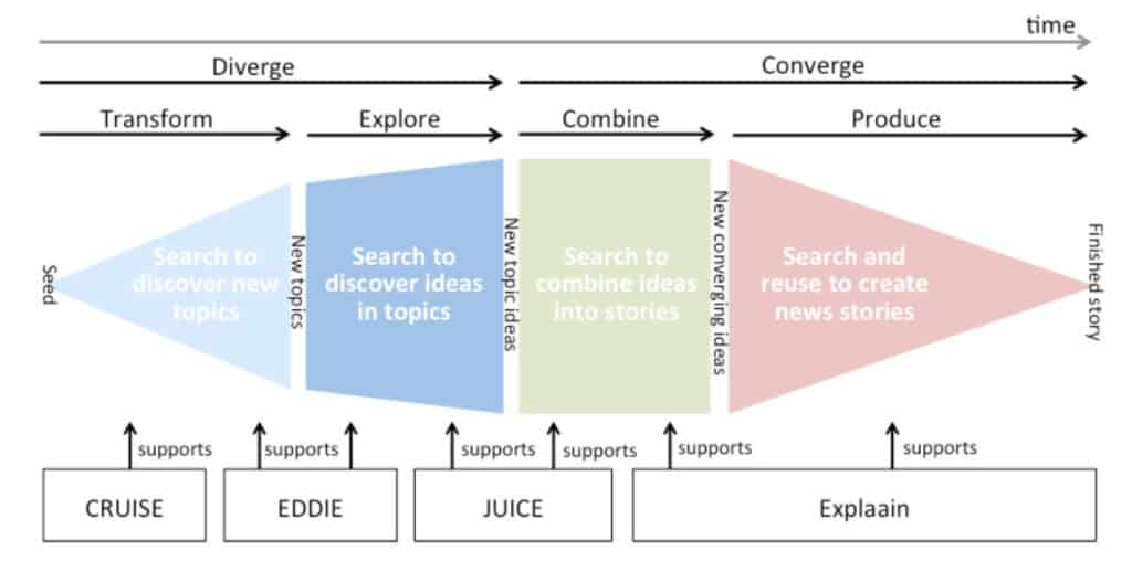Dei ulike verktya er CRUISE: inspirational wordcloud, JUICE: Creativity engine, EDDiE: term disambiguation tool, og EXPLAAIN: authoring tool.