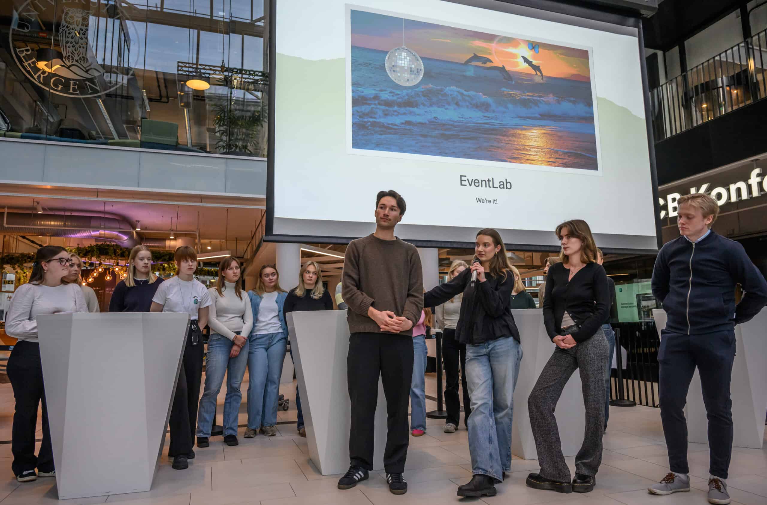 Dagen sparket i gang med høy energi og et fullt program. Konferansier Joao Ribeiro ønsket publikum velkommen med en entusiastisk introduksjon, før han introduserte det spennende jurypanelet bestående av: Joakim Vindenes, Senior Analyst IT / XR utvikler i Equinor; Janicke Allers, investor og rådgiver i Gefyl Invest; Stine Lines Steffensen, innovasjonspilot ved UiB og masterstudent i bærekraft og Stine Olsen Helland, Senior produktdesigner i Aidn.