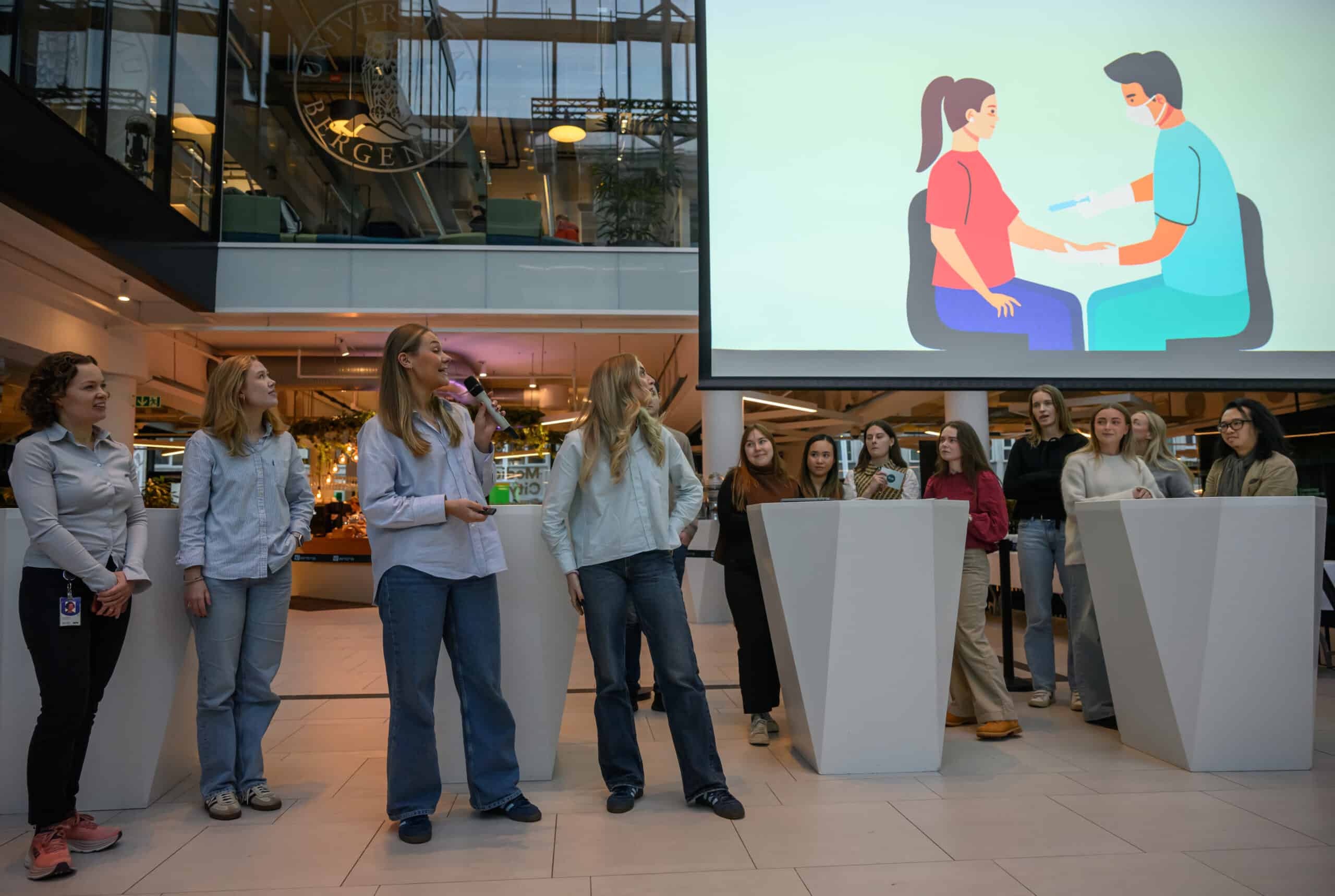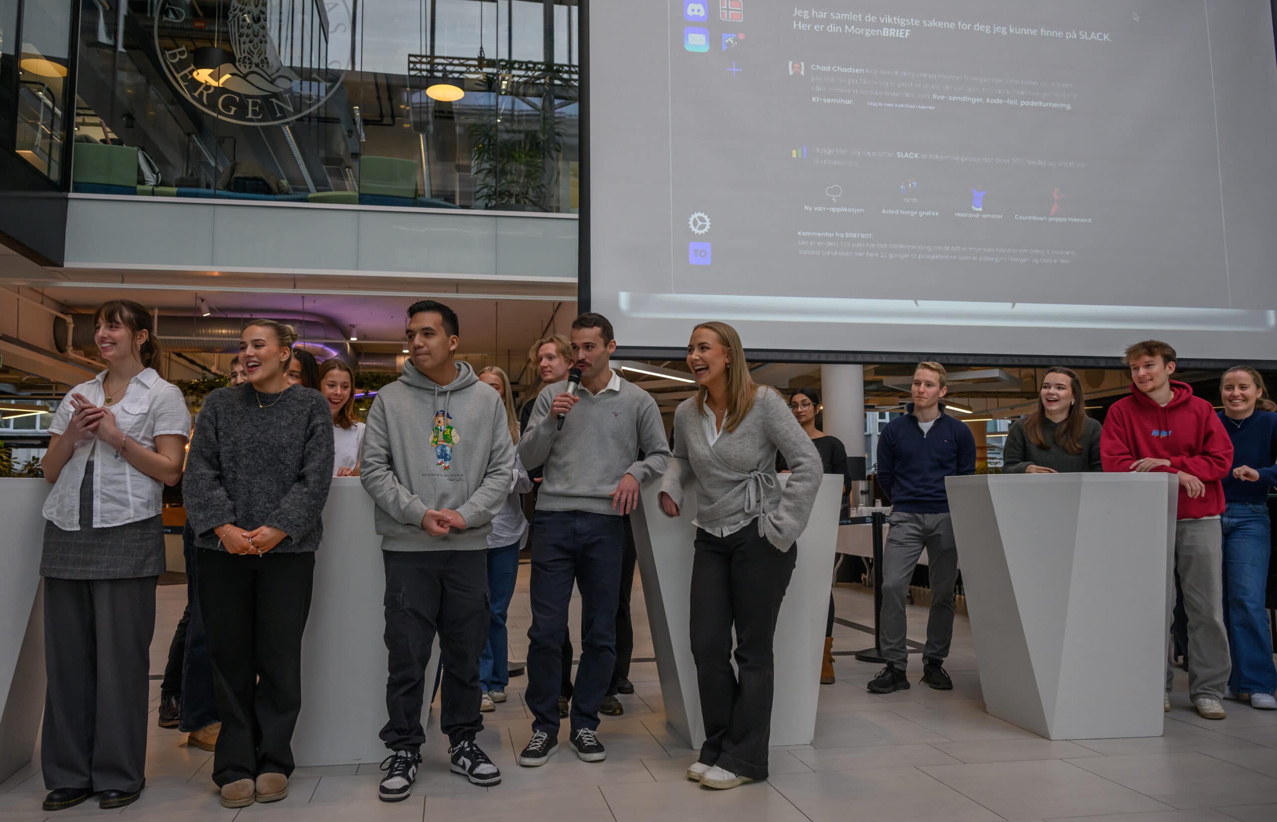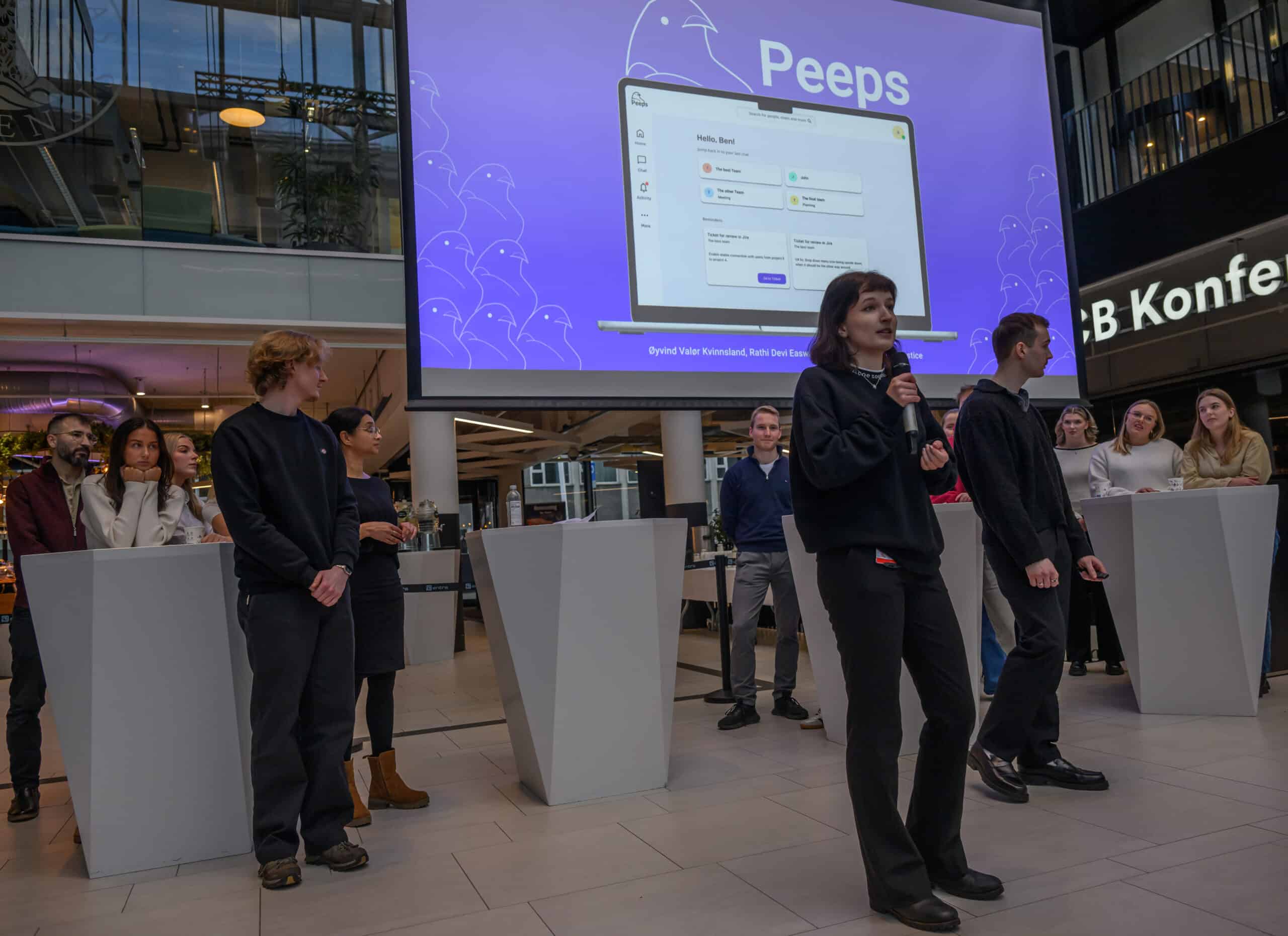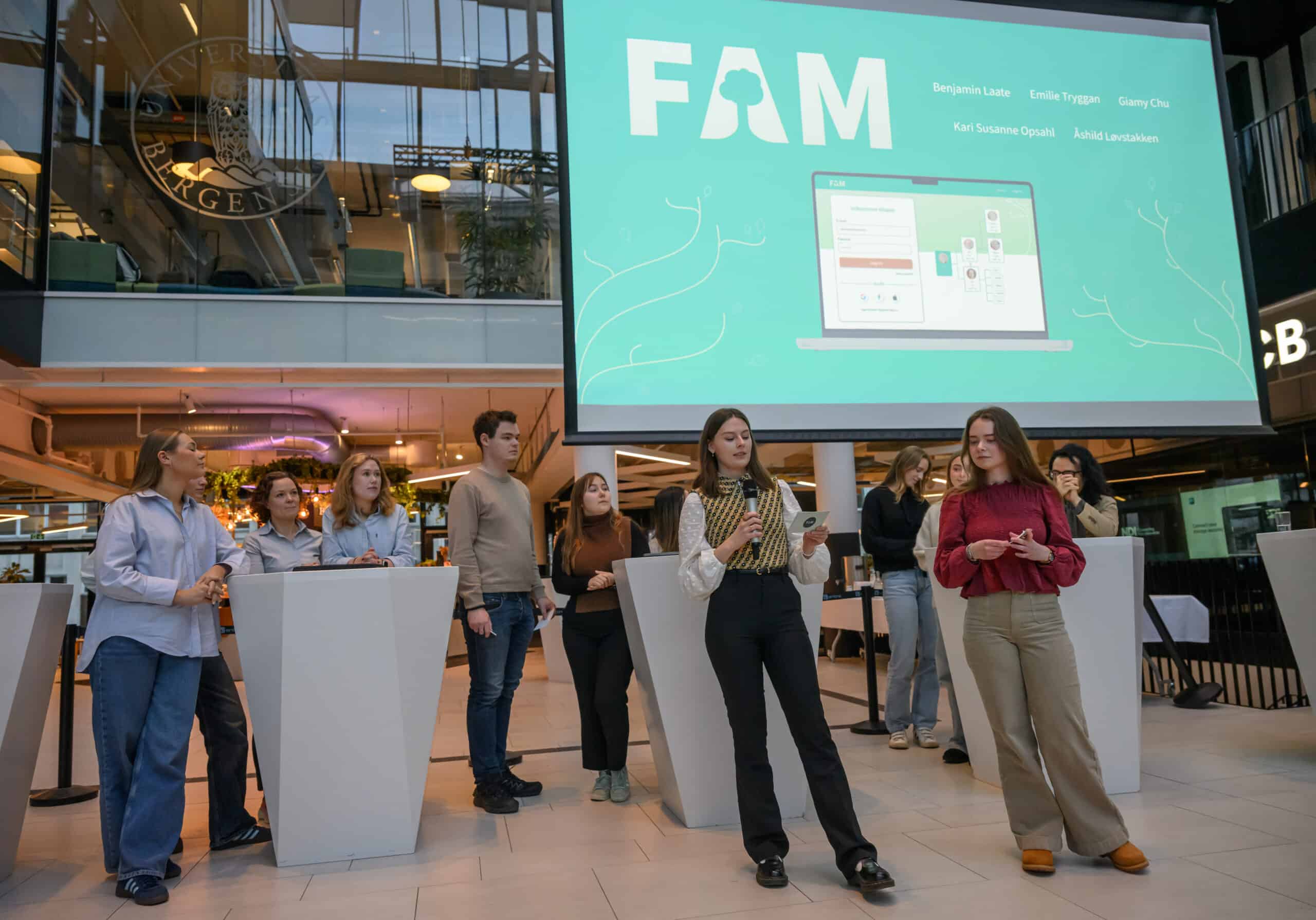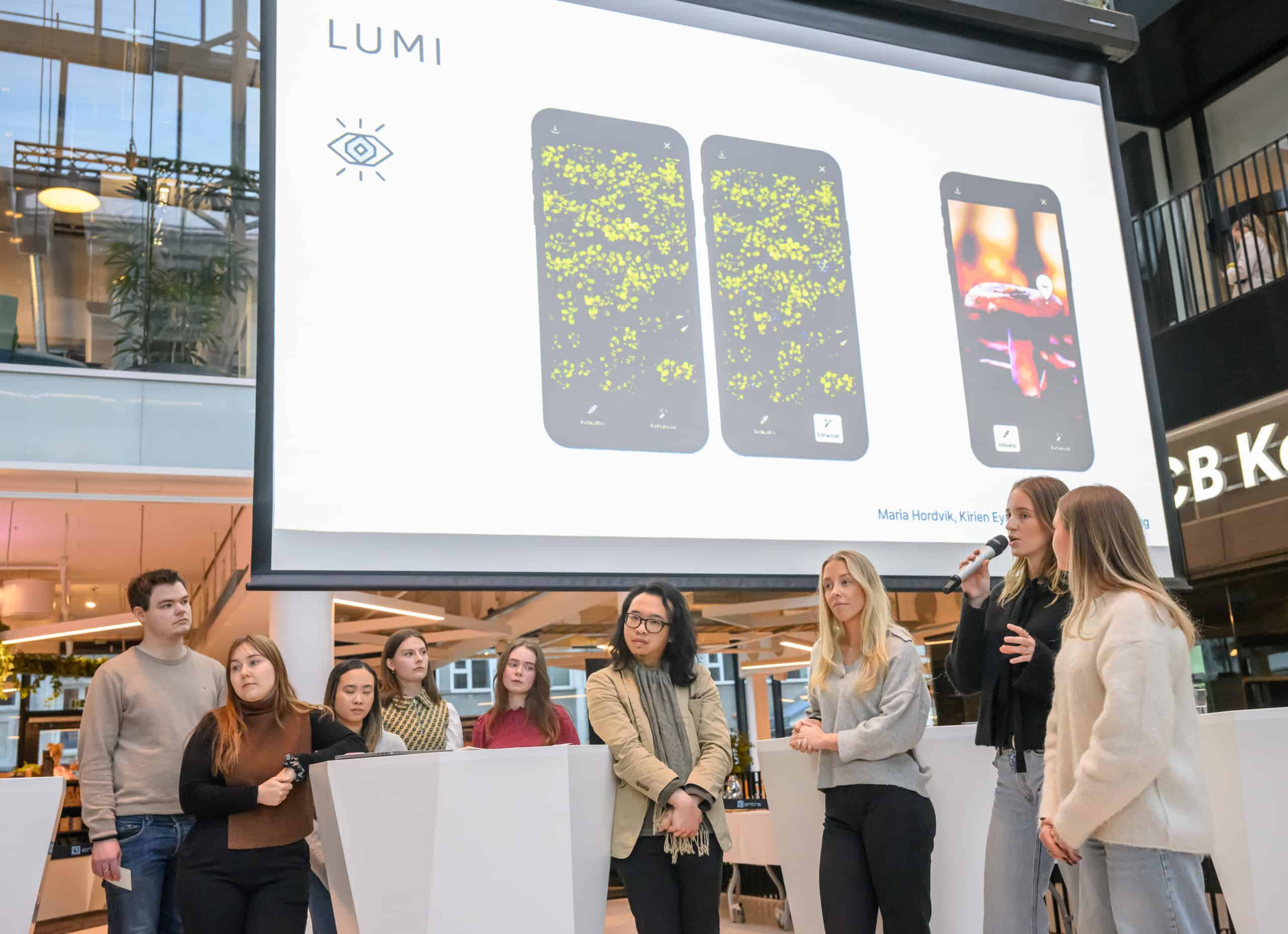 Tre intense pitchsesjoner sto for tur, hvor prosjekter fra emnene MIX100, MIX203 og MIX301 virkelig imponerte både jury og publikum. Se bilder av alle de 15 gruppene som presenterte, nederst i artikkelen. Studentene presenterte prototyper som viste frem både kreativitet og gjennomtenkte løsninger på reelle utfordringer. Det var tydelig at workshopens tips og triks hadde gjort sitt, for hver gruppe leverte med en overbevisende selvtillit og profesjonalitet som fanget oppmerksomheten i rommet.