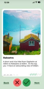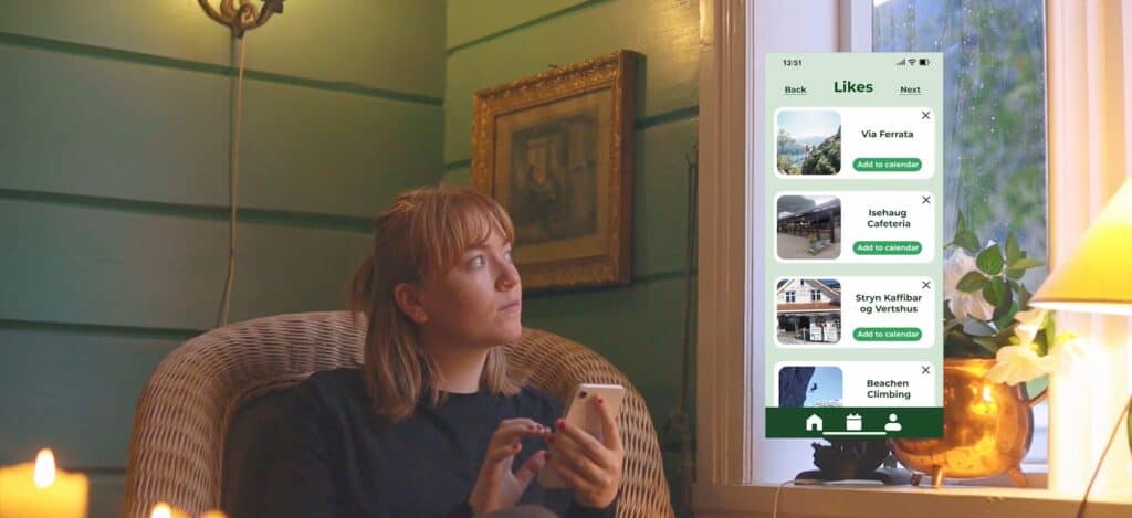 Det er derfor studentene skapet Jørny, en app der du blir spurt om turistpreferansene dine, slik at den kan vise frem og foreslå de mest aktuelle og interessante reisemålene og aktivitetene for deg. Ved å gjøre dette får de mindre kjente turiststedene mer relevans og turistinnsatsene blir spredt over regionen. Jørny skaper et mer bærekraftig miljø på flere måter.