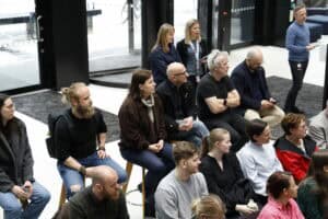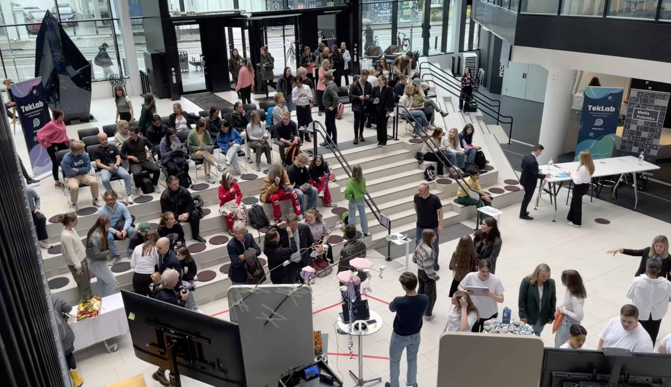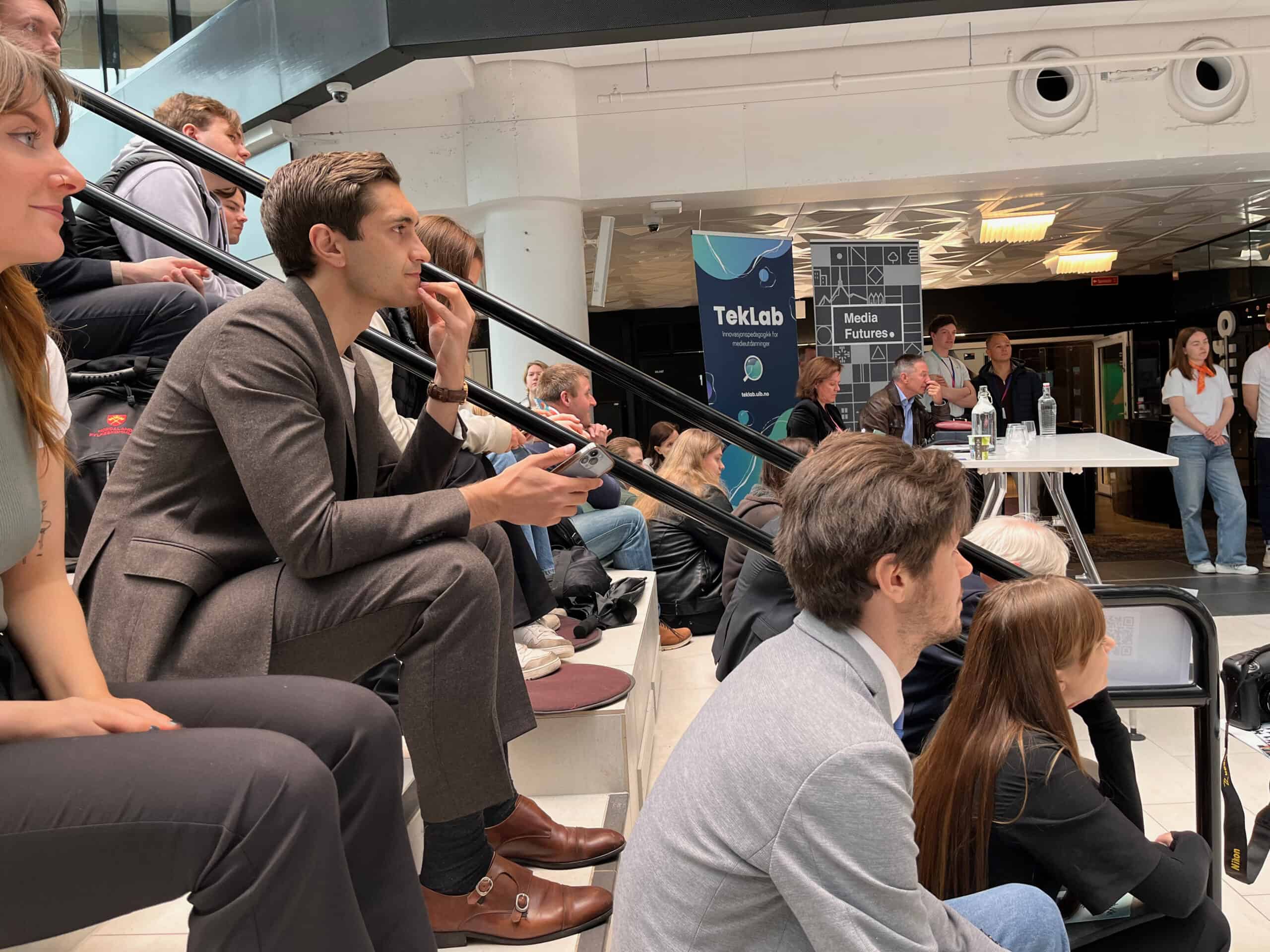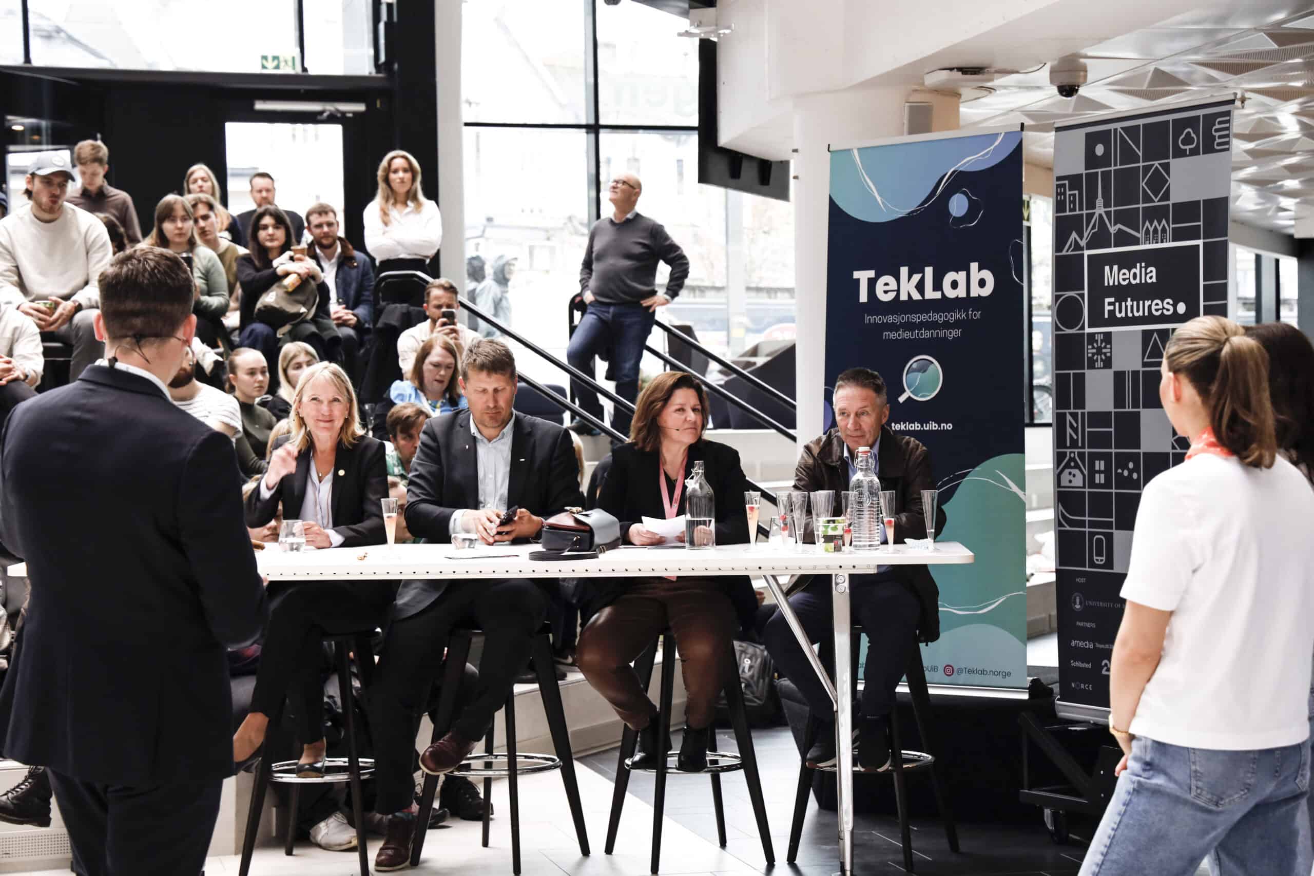Her var det mykje folk. Det var publikum frå våre eigne utdanningar på UiB, elevar frå Langhaugen VGS, forskarar frå Media Futures, og gjester som driv med innovasjon og entreprenørskap ved UiB, NCE Media og HK-dir.