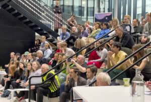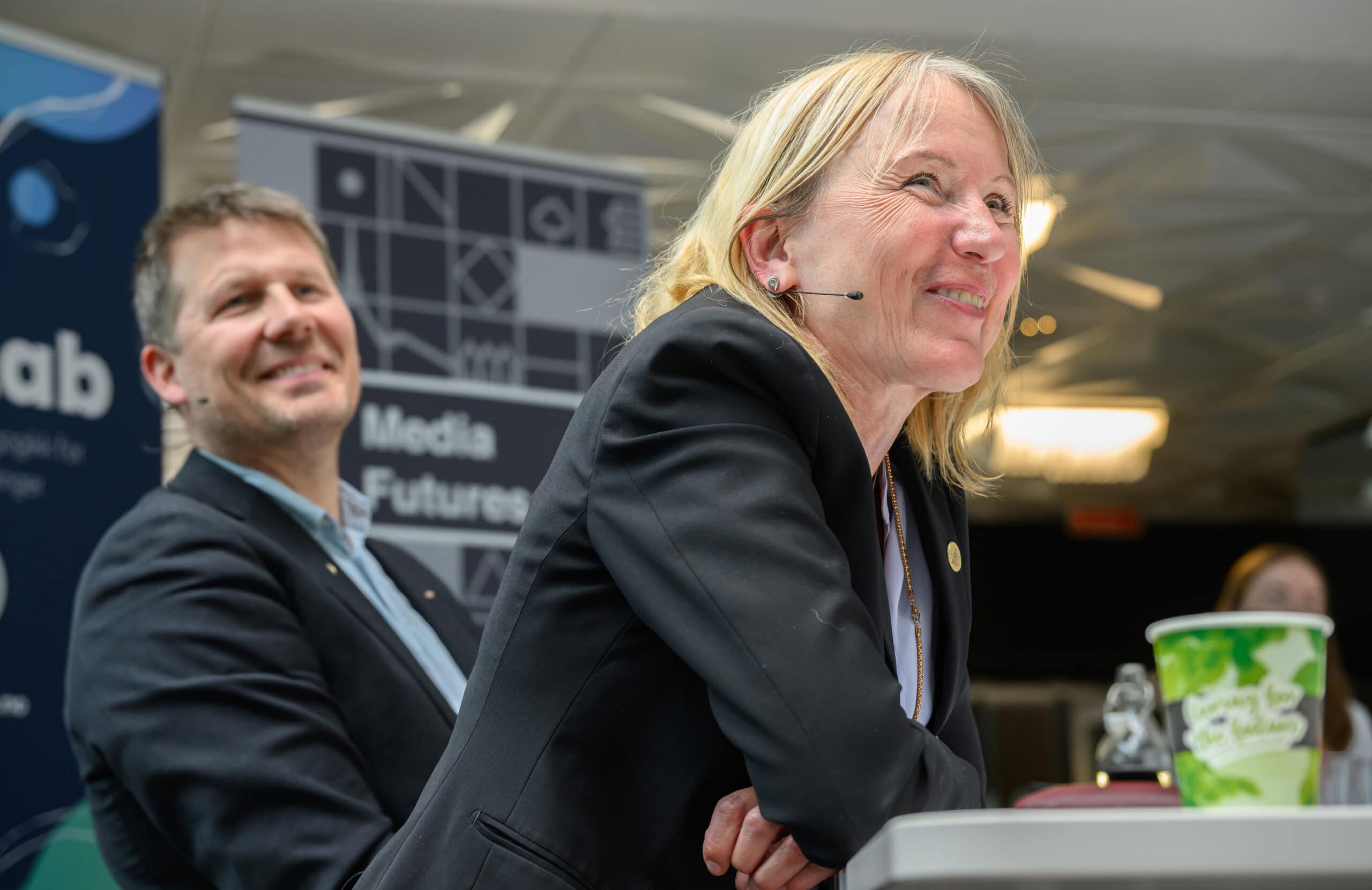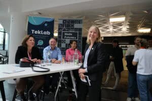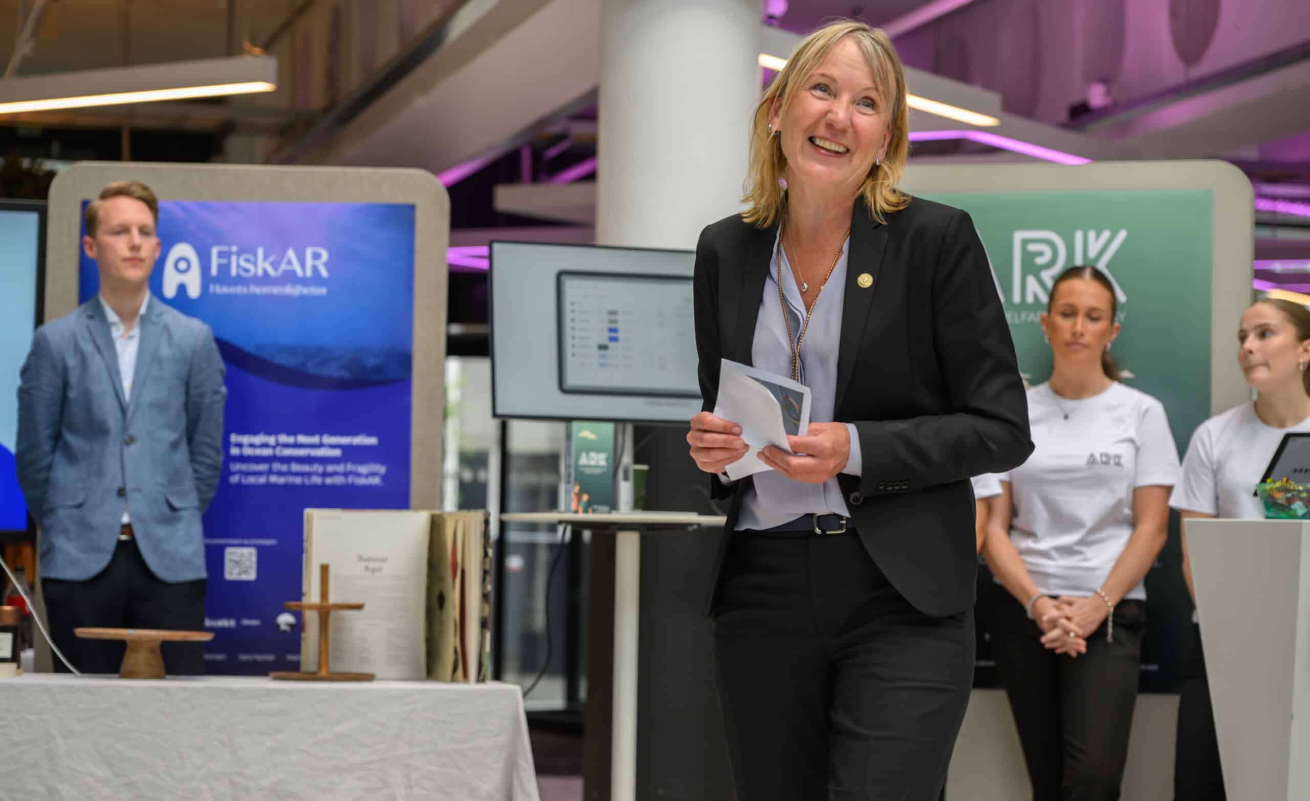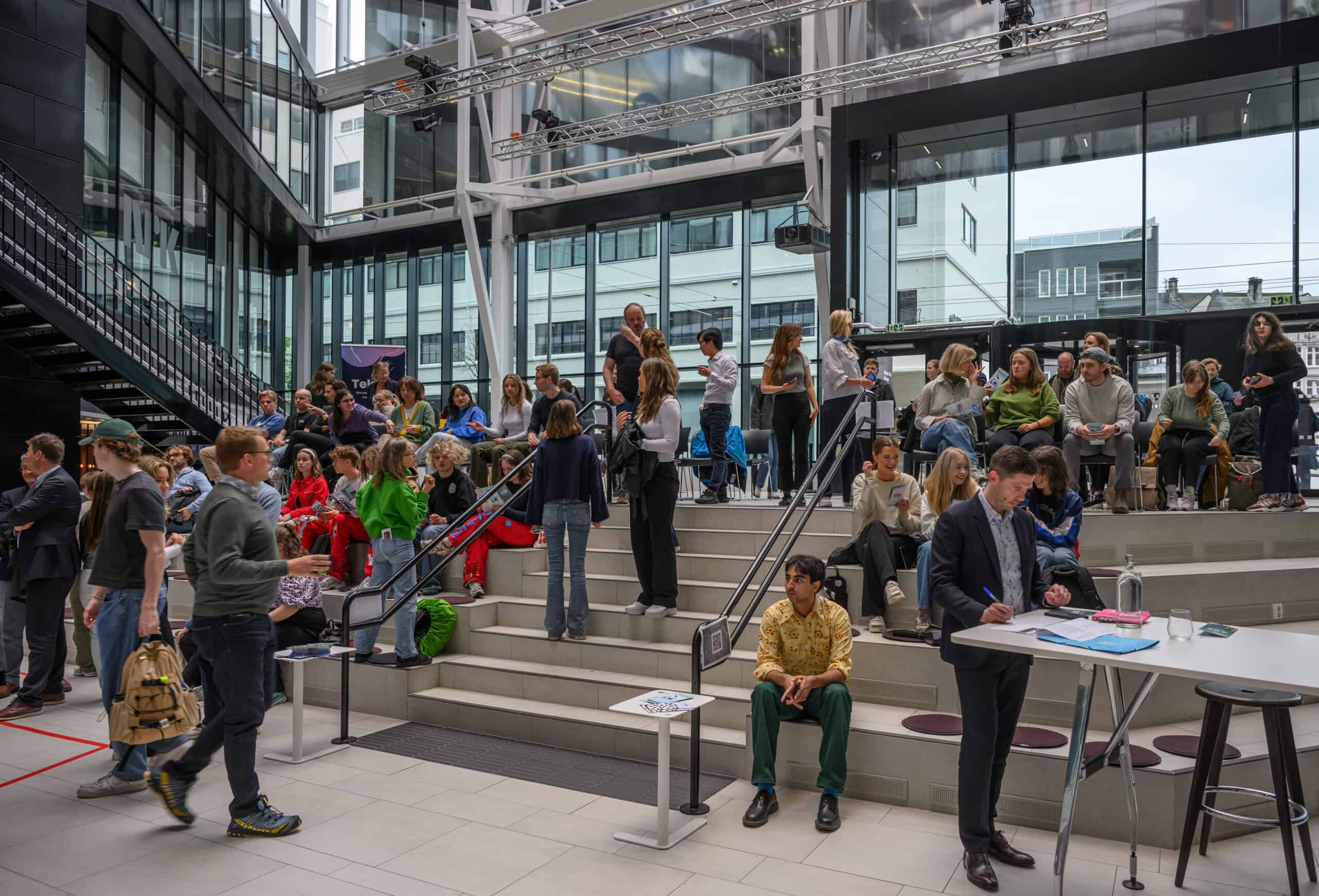 Her var det mykje folk. Det var publikum frå våre eigne utdanningar på UiB, elevar frå Langhaugen VGS, forskarar frå Media Futures, og gjester som driv med innovasjon og entreprenørskap ved UiB, NCE Media og HK-dir.