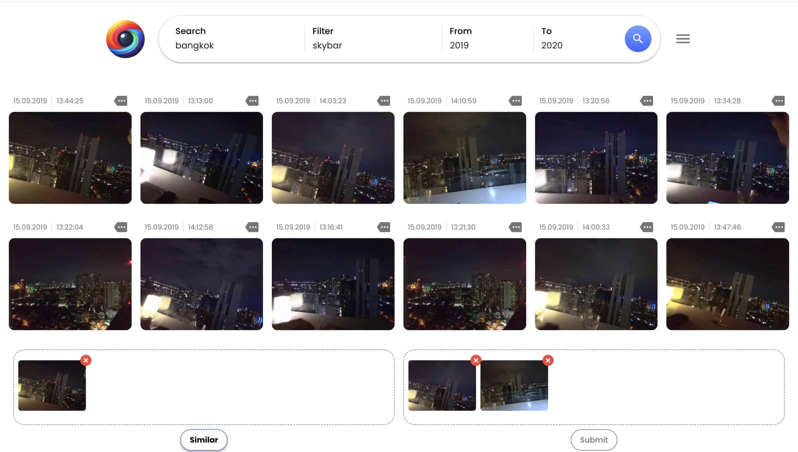 LifeLens 2.0 features an all-in-one search bar at the top that integrates search functions, filters, and time period selection, making it easy to access at any time. We’ve retained the drag-and-drop function but moved it to the bottom to make the system more intuitive and to provide more space for images. The system has been updated with a new, minimalist yet eye-catching design. The refreshed LifeLens logo is lively and incorporates a camera lens in the center, set against a simple color scheme of whites and grays. The new colors, font family, and element sizes are all designed and implemented according to WCAG standards. This approach keeps the design clean while highlighting the search bar.
