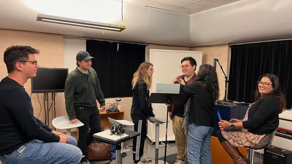 TekLab contributors Lone Nyløkken and Nora Storebø produced and published the podcast. They also produced the podcasts at the television and multimedia bachelor in 2022 and 2023. Associate professor Nadine Zoghbi created the jingle and helped out with the production.