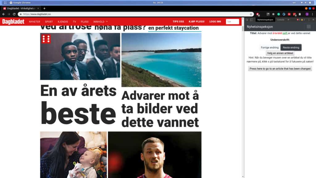 Dette er funksjonen til Nyhetsinspektør (eller NewsInspector): Det er et tillegg (plugin) til nettleseren Chrome, som overvåker nyhetsartiklene for deg og viser hvordan hver av artiklene har blitt redigert. Hvert tjuende minutt samler tillegget inn rå data, oversetter det til informasjon og presenterer eventuelle endringer for brukeren.
