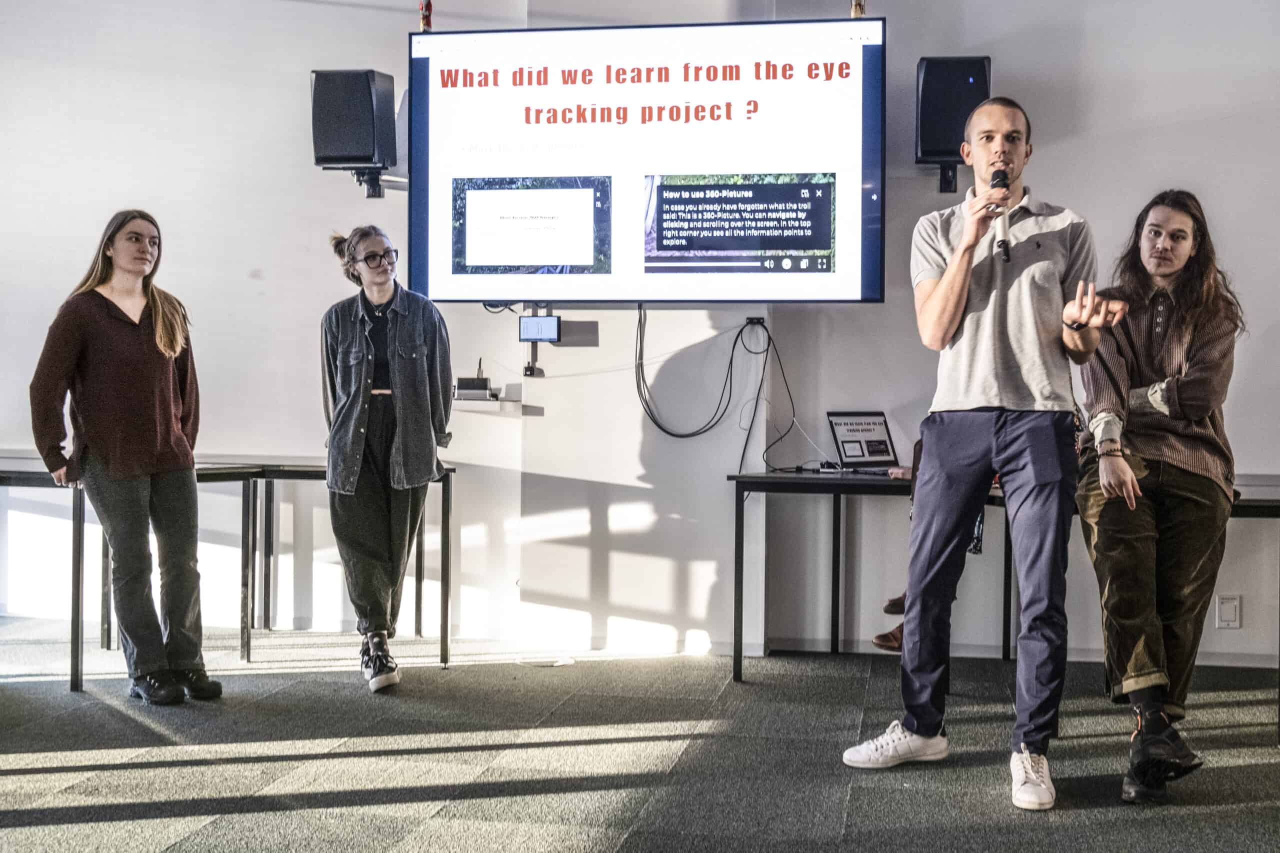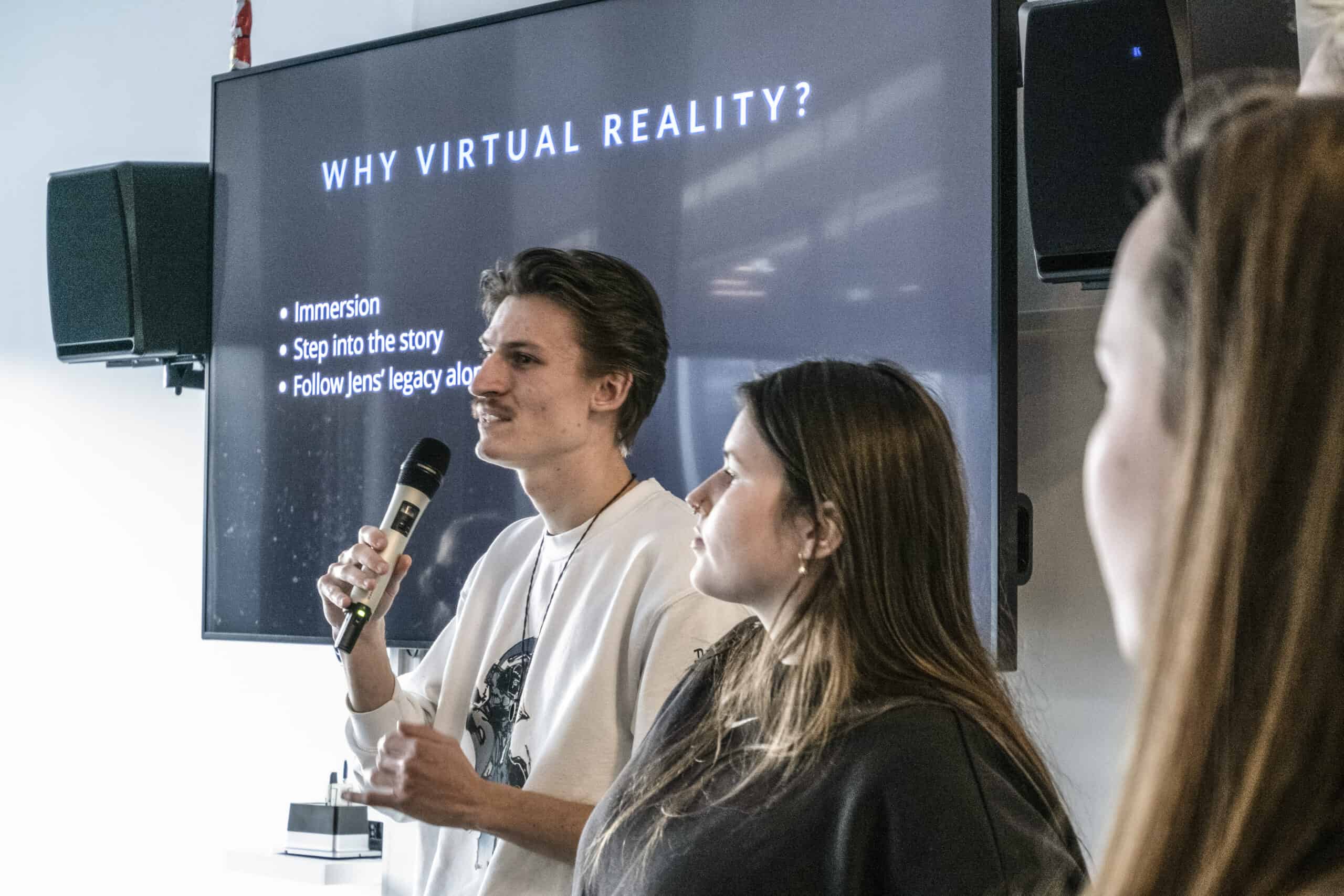Guided by lectures on webdesign, AR/VR, and storytelling, the students all used different forms of media and interactive elements to create their documentary. Groups used Artificial Intelligence to create interactive elements and even created an entire VR environment.