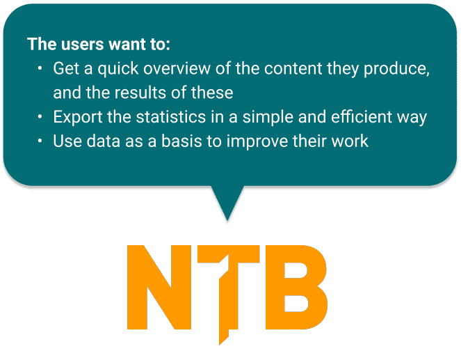 According to NTB, the customers reported that they want to get more data insight about their press releases. As of today they have the opportunity to get some insight on NTB Kommunikasjon, but the challenge is that most of them don't really use this part of the platform at all as they prefer other services.