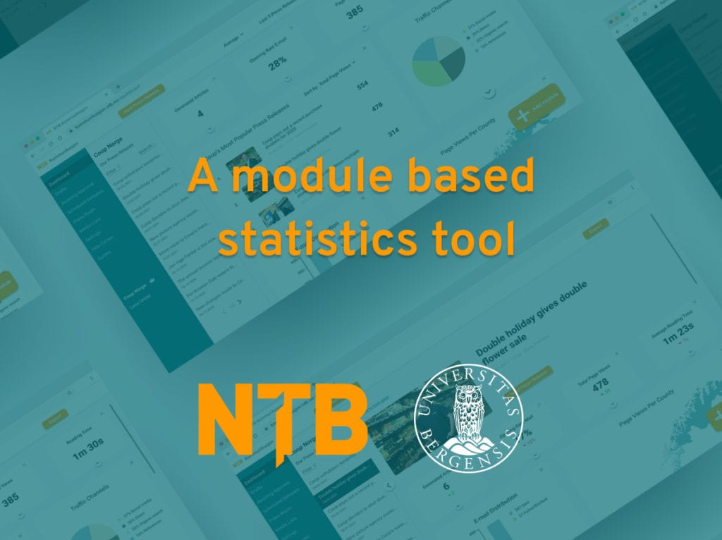 Have you ever struggled with understanding statistics and data, or been frustrated about being presented irrelevant data that isn't based on your own needs? As an attempt to solve this issue for customers and employees at the company Norsk Telegrambyrå (NTB), The NTB statistics tool was developed. It offers a module-based design where users can add, remove and rearrange the statistics based on their own needs in a customizable dashboard.