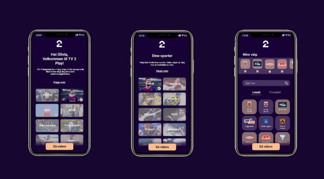 Ved å bruke onboarding kan tjenesten tilpasses til hver enkelt bruker, samtidig som de mest sentrale funksjonene forklares. Vår onboarding starter med å spørre brukeren hvilke sjangrer de er interessert i. Deretter blir brukeren spurt om hvilke sporter som er av interesse. Videre kan brukeren velge lag, klubber, og ligaer. Med aktivert stedstjenester kan de lokale lagene bli presentert gjennom lokal fanen. En annen fane er foreslåtte lag, som vil være basert på de mest fulgte og populære lagene. Det er også mulig å søke etter ønsket lag, klubb og liga.