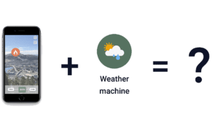 With the help of AR-technology, the user is presented with a visualization of a time travel with emphasis on how Bergen is changing and influenced by climate change. The new installation is going to be a «weather machine», and is still in an early development stage, meaning that much of its functionality and visual appearance is unknown. Creating a connection to something which is not yet defined proved to be challenging, but it also meant that their framework and possibilities were quite open and flexible.