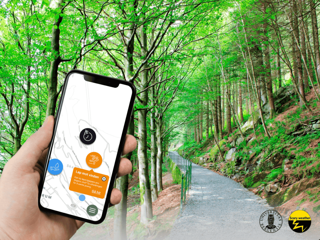 Værkampen is a fun and innovative experience based concept, which aims to educate and create engagement about weather and climate. The concept plays on a combination of an application and a physical installation known as «The Weather Machine». Via the application, users, who can be anyone visiting Mount Fløyen, can explore various activities and take on challenges related to weather and climate. By doing these activities, the user collects points which can be registered at The Weather Machine. Registering points at the Weather Machine will lead to a contribution to Værkampen’s current climate commitment, as well as reward the user with coupons.