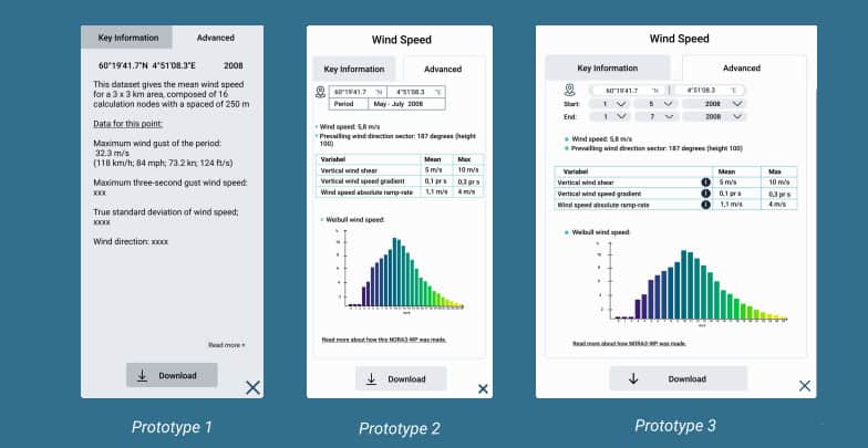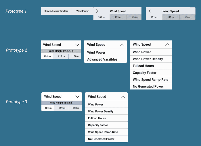 The students have also done tests on how to best imrpove the area selector, the options to dowload data and the prototypes variable selector.